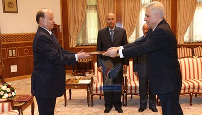 تسلم الاخ الرئيس عبد ربه منصور هادي رئيس الجمهورية في مكتبه اليوم أوراق اعتماد ال