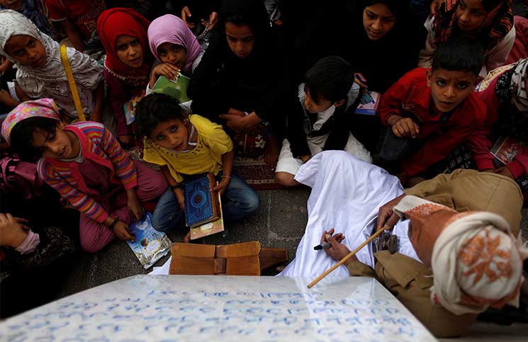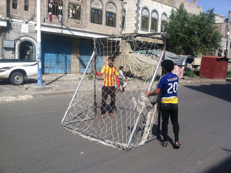 تحولت شوارع وميادين صنعاء إلى ملاعب بسيطة لممارسة لعبة الكرة الطائرة، وهذه اللعبة