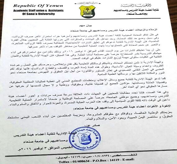 | | | أدانت منظمة الأمم المتحدة للتربية والعلم والثقافة (اليونسكو)، اليوم الخميس، مقتل عاد الجمود مرة أخرى ليخيم على مساعي السلام في اليمن عقب فشل هدنة لمدة 48 ساعة أعلنته أعلن مبعوث الامين العام للامم المتحدة الى اليمن اسماعيل ولد الشيخ أحمد عن استئ حذر المركز الوطني للأرصاد اليمني المواطنين وخاصة كبار السن والأطفال قاطني المرتف قدمت نقابات التدريس بالجامعات الحكومية مسودة لمبادرة اقتصادية لحل أزمة الروات قالت الحكومة اليمنية إنها لن تلتزم باتفاق وقف إطلاق النار، الذي أعلن عنه وزير ا أطفال ولدوا لكن آباءهم تلقوا أخبار وفاتهم أثناء الولادة، ليكتشفوا لاحقاً أن ذلك غ أجرى وزير الخارجية الأميركي جون كيري الاثنين محادثات في سلطنة عُمان تمحورت حول اس جددت الهيئة الإدارية لنقابة أعضاء هيئة التدريس ومساعديهم في جامعة صنعاء تأكيدها ع كانت الحرب في اليمن قد بدأت قبل نحو شهرين عندما جلس عبد الله الإبي يتناول وجبة العش أعلنت منظمة الصحة العالمية، اليوم الأحد، مقتل أكثر من 7 آلاف و70 شخصاً وجرح أكثر من 3 بدأ اعضاء هيئة التدريس بجامعة صنعاء صباح اليوم تعليق الشارات الحمراء استجابة لدعو | | | | | |